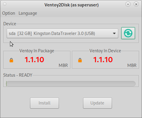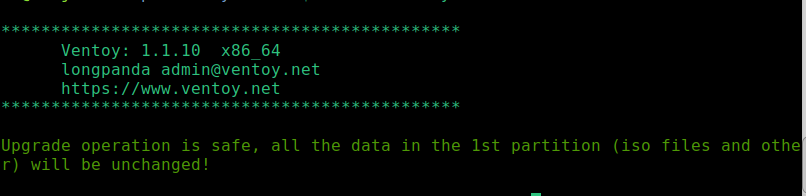 $ sudo ./Ventoy2Disk.sh -i -I -u /dev/sda