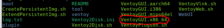 Por otra parte, Ventoy también cuenta con una versión GUI para linux y se encuentra dentro del mismo directorio donde descomprimimos Ventoy