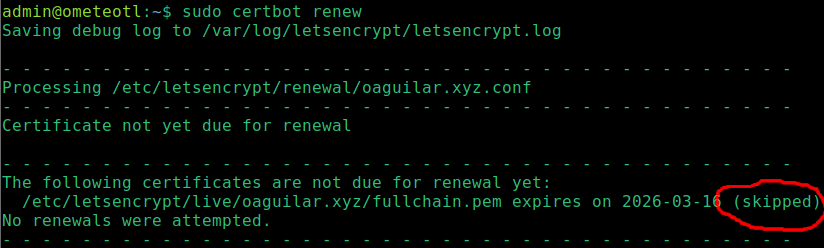 Pero bueno, esa es la manera en que se renueva un certificado cuando se usa CertBot